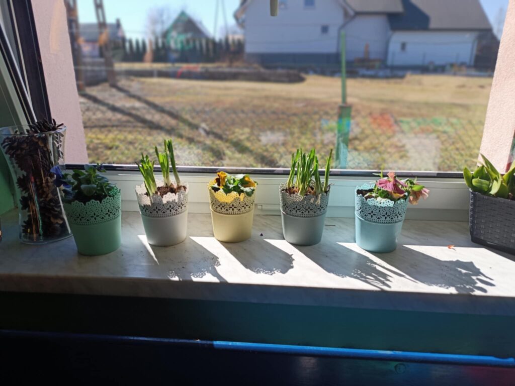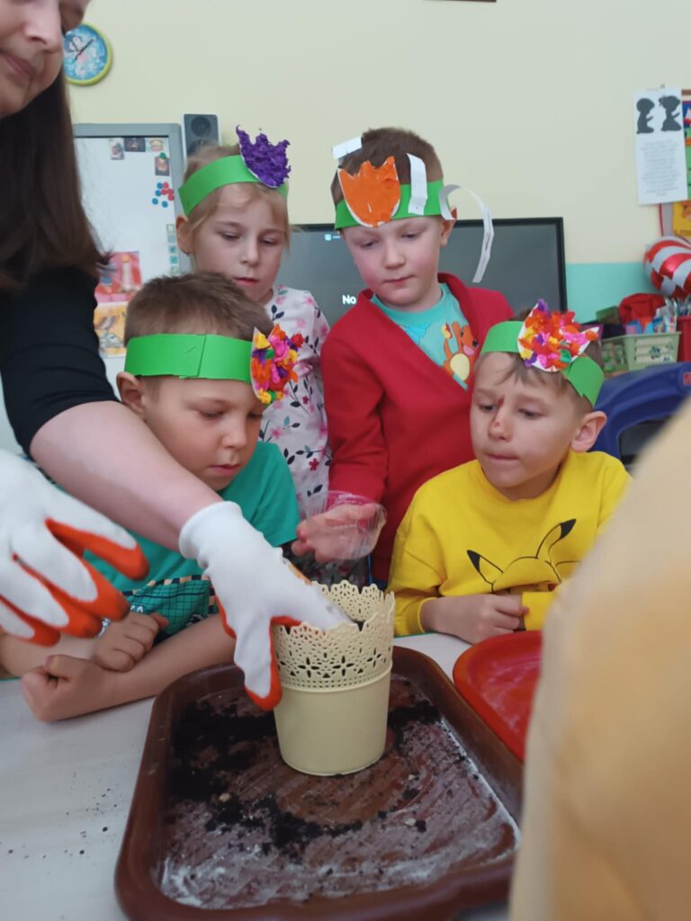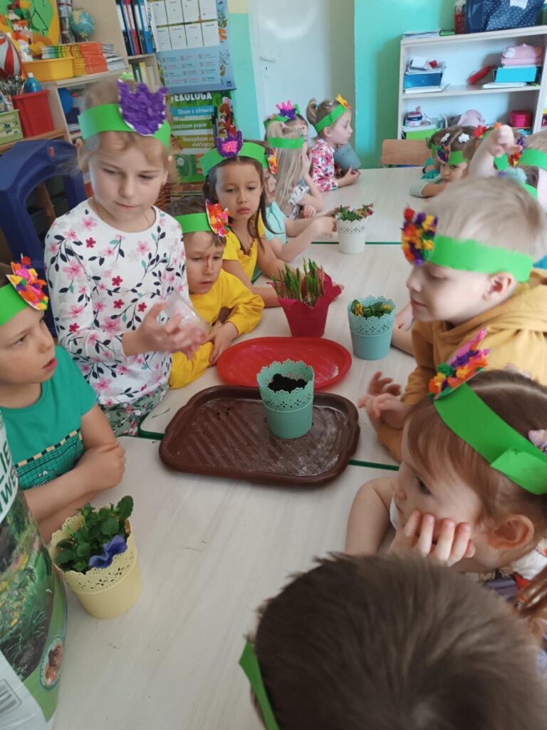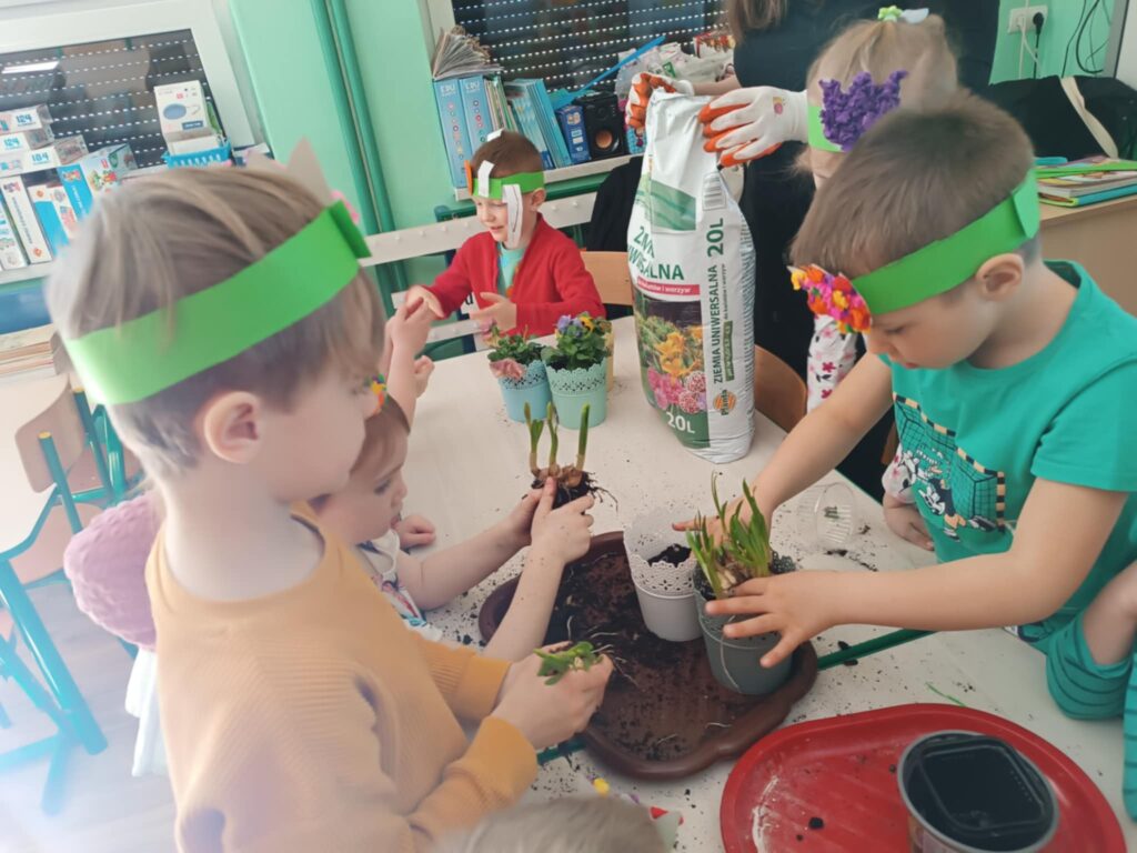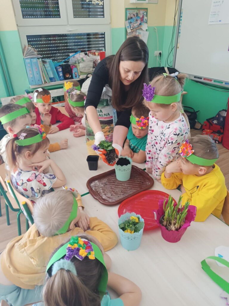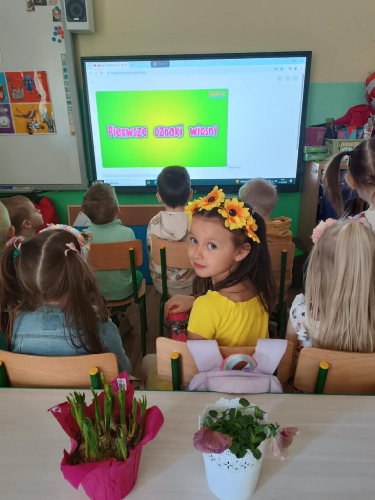 WIOSNA w przedszkolu. Dzisiaj dzieci nie tylko szukały oznak wiosny na spacerku, również w sali przedszkolnej podejmowały wiosenne aktywności.