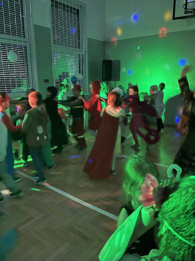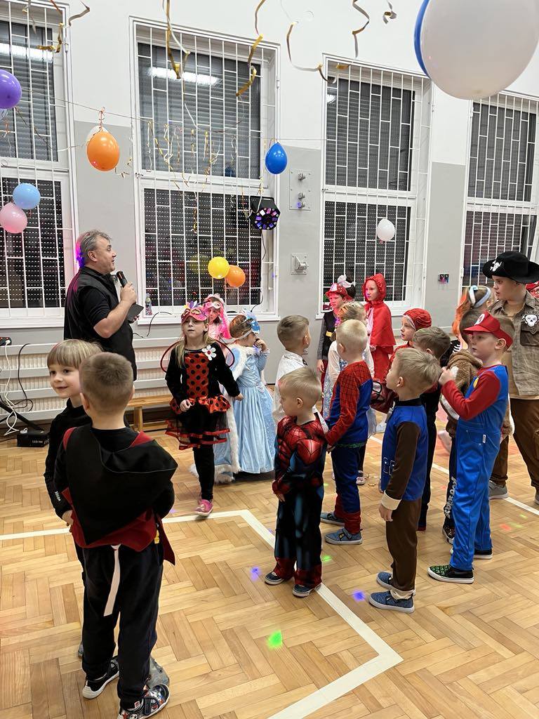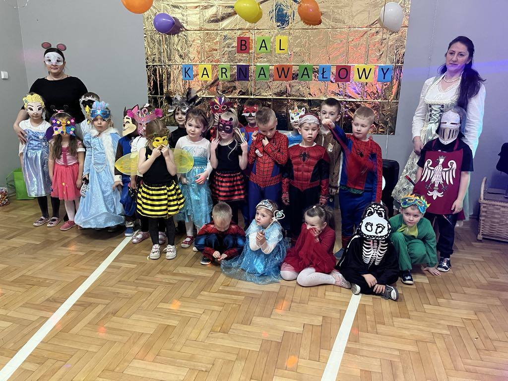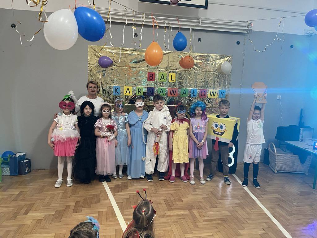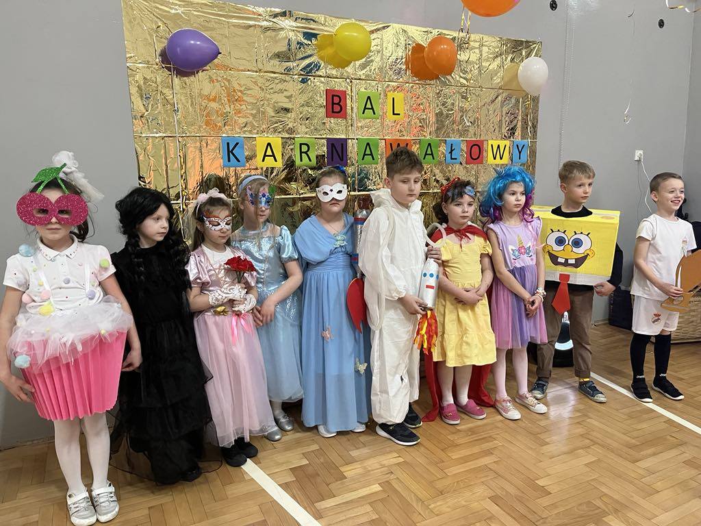 27 lutego 2025r. w naszej szkole odbył się BAL KARNAWAŁOWY. Tego dnia już od rana pojawiały się na korytarzu i w przedszkolu kolorowe postacie z bajek, filmów. Rozpoznać dzieci było bardzo trudno : ) Kiedy pojawiły się pierwsze rytmy muzyki wszyscy rozpoczęli pląsy i tańce, które były przeplatane różnymi konkursami. Wszyscy bawili się świetnie