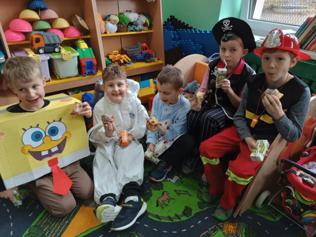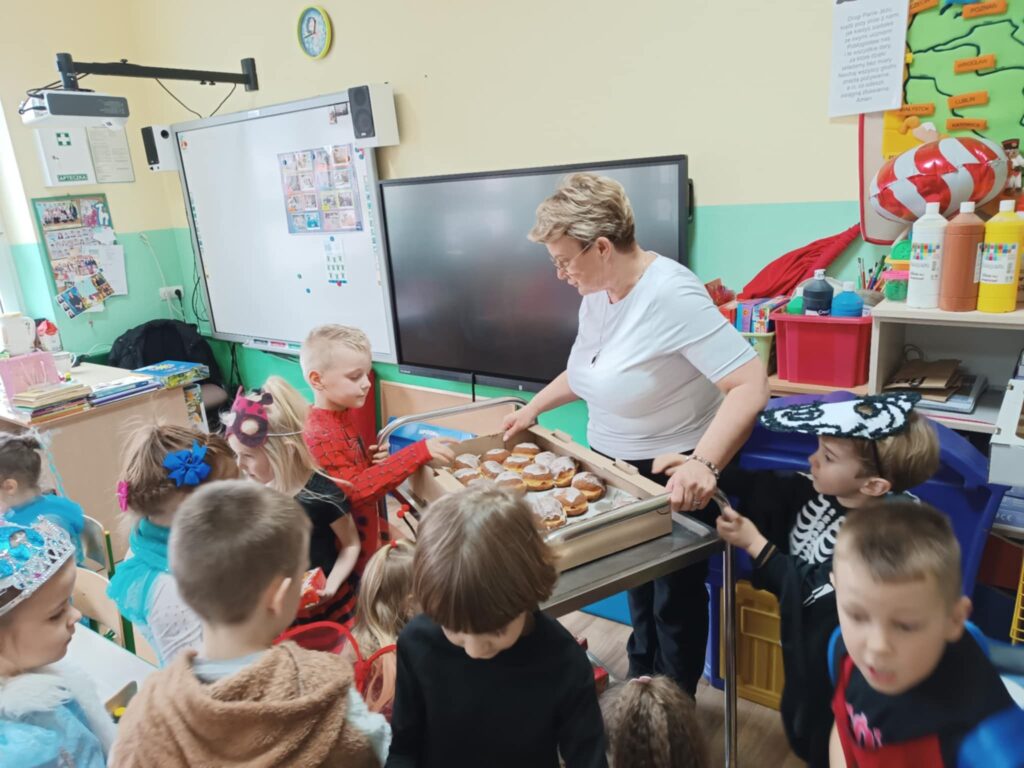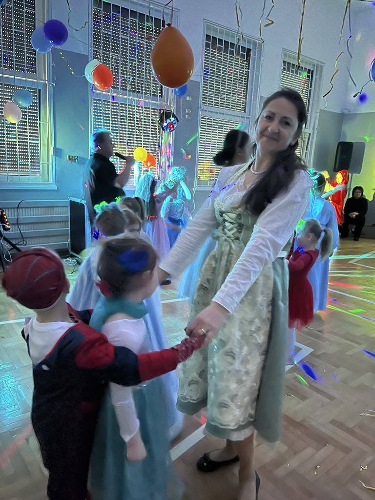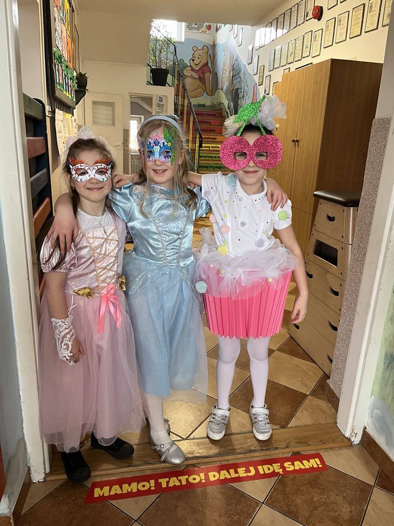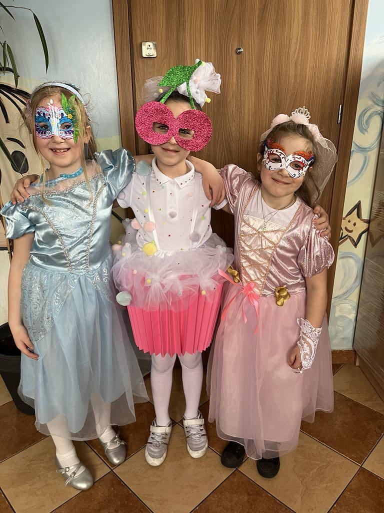 27 lutego 2025r. w naszej szkole odbył się BAL KARNAWAŁOWY. Tego dnia już od rana pojawiały się na korytarzu i w przedszkolu kolorowe postacie z bajek, filmów. Rozpoznać dzieci było bardzo trudno : ) Kiedy pojawiły się pierwsze rytmy muzyki wszyscy rozpoczęli pląsy i tańce, które były przeplatane różnymi konkursami. Wszyscy bawili się świetnie