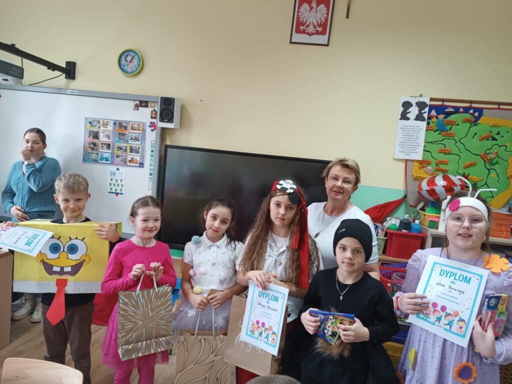 Na balu był rozstrzygnięty konkurs na najpiękniejszą maskę karnawałową w przedszkolu i najpiękniejszy strój karnawałowy w klasach I – III i V – VIII. Zwycięzcom gratulujemy.