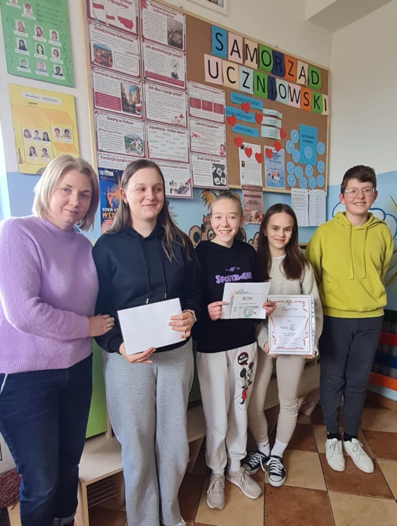 Po zaciętej rywalizacji, zwycięzcą została klasa VII, która otrzymała tytuł „Mistrzów Języka Ojczystego” oraz bon upominkowy o wartości 100 PLN. Wszystkim uczestnikom gratulujemy zaangażowania i kreatywności!
