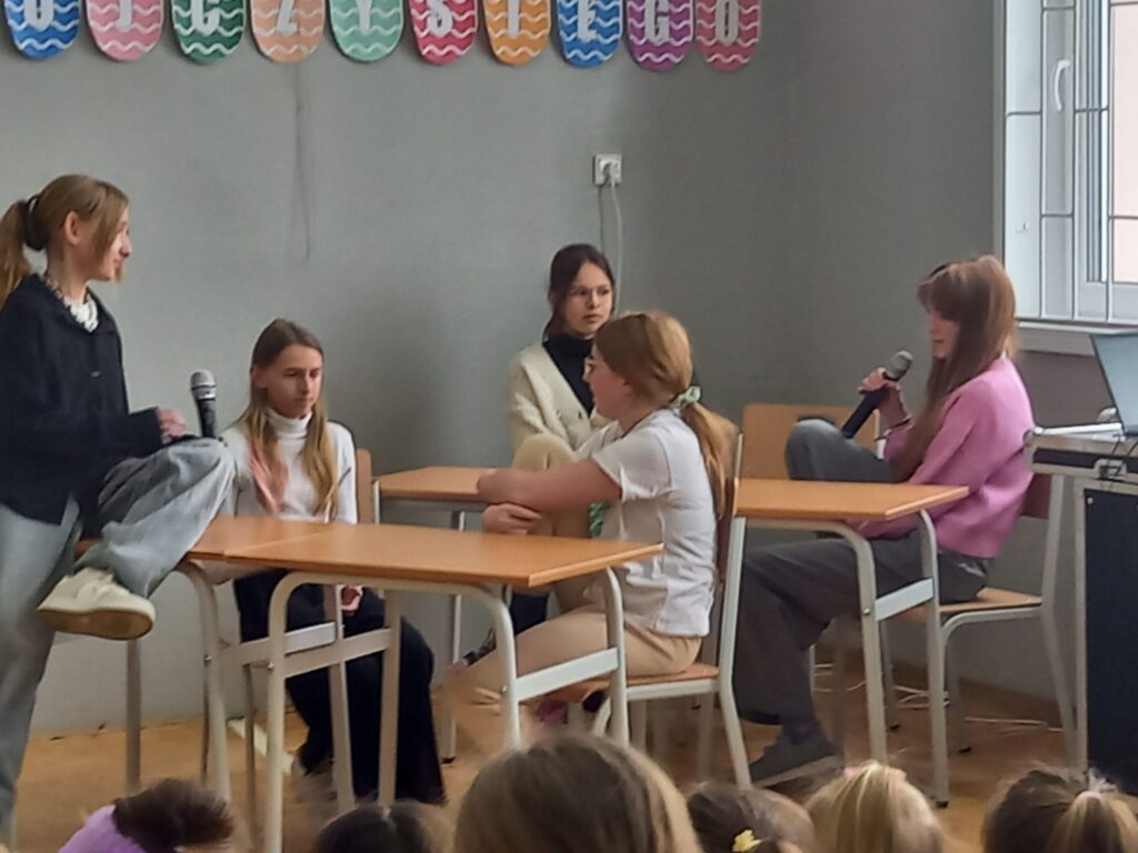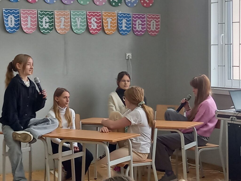 Quizie wiedzy o języku „1 z 10”: Uczniowie sprawdzali swoją wiedzę na temat języka polskiego, jego historii, gramatyki i ciekawostek językowych. Quiz ten był świetną zabawą, ale i okazją do poszerzenia wiedzy na temat języka ojczystego.