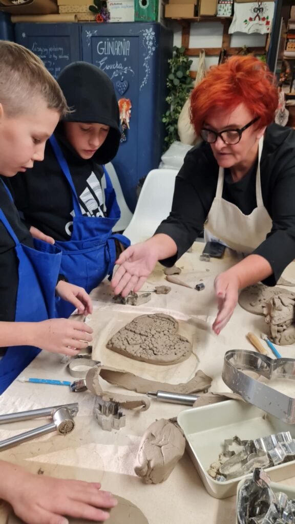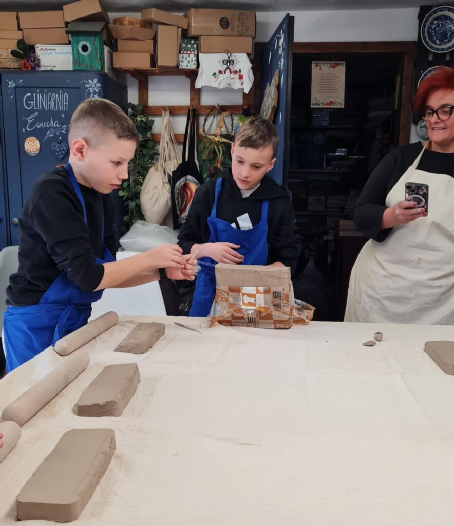 Nasi uczniowie klasy V mieli okazję wziąć udział w wyjątkowych warsztatach ceramicznych w Gliniarni „Ewucha” w Zubrzycy Górnej. Pod okiem p. Ewy, która opowiadała i pokazywała jak należy obchodzić się z gliną, wszyscy własnoręcznie wykonali piękne serca z gliny – powstały fantastyczne prace.