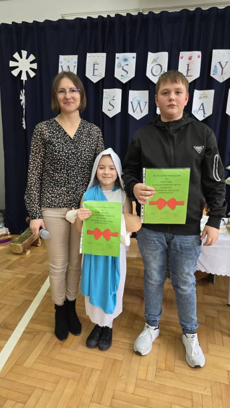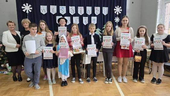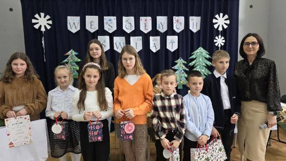 Boże Narodzenie to czas radosny, pełen nadziei, zadumy, refleksji i wspólnego świętowania. Taki właśnie nastrój zapanował w naszej szkole. Magiczny czas udzielił się uczniom i wszystkim pracownikom. Świąteczne dekoracje ozdobiły całą szkołę. Wszyscy odświętnie ubrani z niecierpliwością oczekiwali na niecodzienne i wyjątkowe wydarzenie. Na hali gimnastycznej odbyła się uroczysta akademia przeplatana koncertem kolęd i pastorałek, która wprowadziła nas w świąteczną atmosferę. Dopełnieniem uroczystości były piękne życzenia Bożonarodzeniowe złożone przez Panią Dyrektor oraz Samorząd Uczniowski.Rozdano również nagrody za udział w konkursach : plastycznym – ozdoby bożonarodzeniowe, SKO- kartki świąteczne ,oraz z Samorządu Uczniowskigo na najładniej udekorowaną klasę .