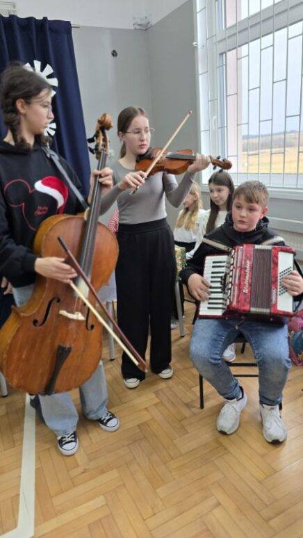 Wszyscy uczniowie w swoich klasach zasiedli także do wspólnej wigilii. Takie podniosłe chwile nie tylko utrwalają uczniom znajomość tradycji i świątecznych zwyczajów, lecz również wzmacniają bliskie i serdeczne relacje między sobą i najbliższymi.