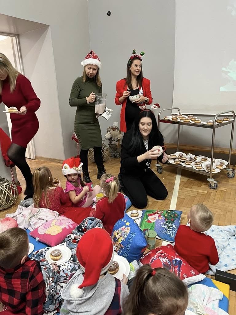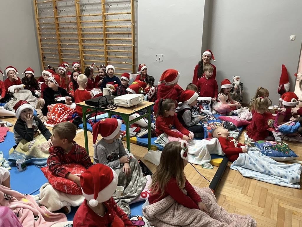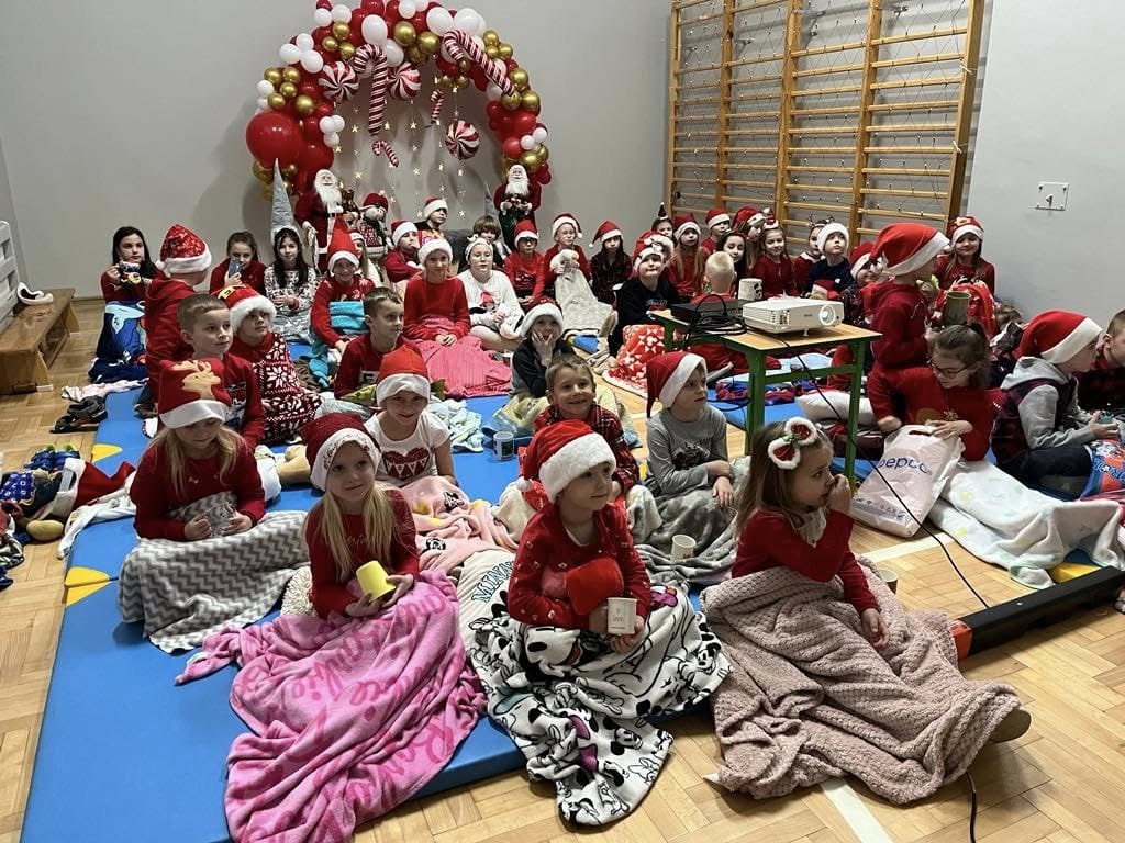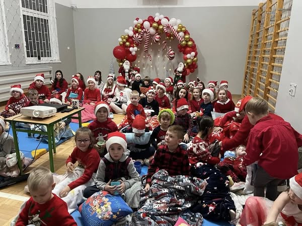 Od samego rana z każdej strony biegali po korytarzach uczniowie ubrani na czerwono, w pięknych mikołajkowych czapkach. Jaka była radość, gdy zawitał do naszej szkoły Św. Mikołaj. Dzieci witały go z ogromnym entuzjazmem. Było dużo radości i uśmiechów. Przejęte i uradowane buźki, zwłaszcza najmłodszych dzieci, potwierdziły, że zawsze niecierpliwie Go oczekują. Rada Rodziców na sali gimnastycznej przygotowała przepiękną dekorację, gdzie uczniowie oglądali film o Świętym Mikołaju. Nie zabrakło również słodkości – ciasteczek, pączków i napojów. Spotkanie z Mikołajem minęło bardzo szybko i sprawiło uczniom wiele radości .