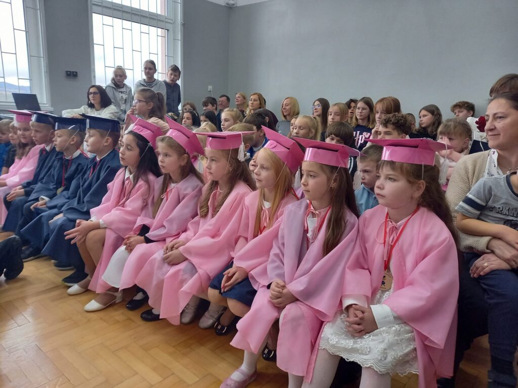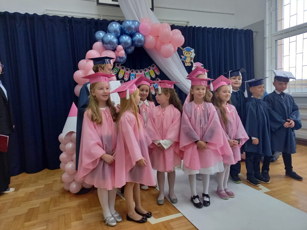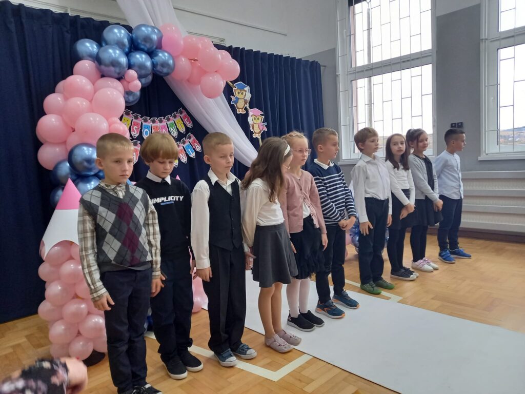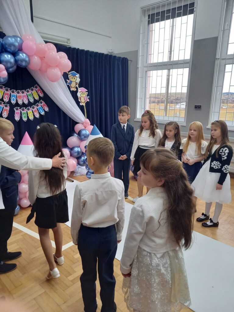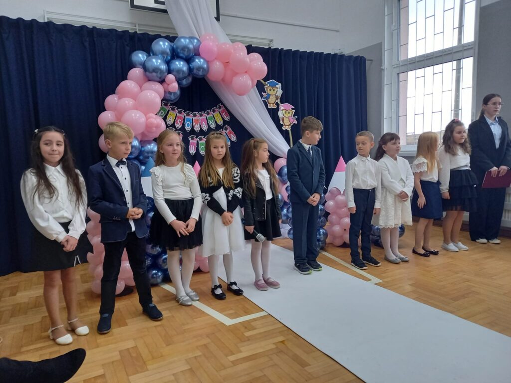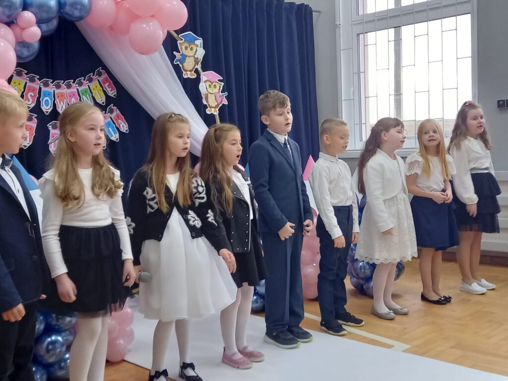 Ślubowanie uczniów klas pierwszych to bardzo ważne wydarzenie nie tylko dla najmłodszych, ale również dla ich bliskich. Pięknie zaśpiewane piosenki, taniec, z przejęciem wyrecytowane wiersze, wycisnęły niejedną łezkę z oczu rodziców. Ten dzień na długo pozostanie w pamięci nas wszystkich. Miłym zakończeniem tej uroczystości były wspólne fotografie oraz poczęstunek.