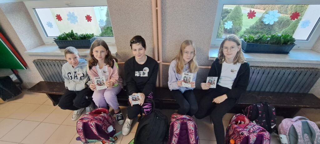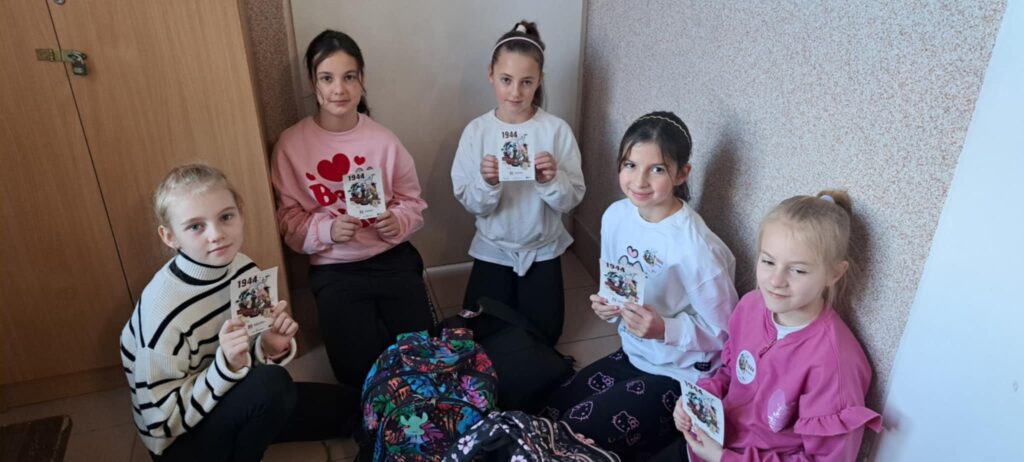 Z tej okazji dzisiaj w naszej szkole rozdawane były naklejki oraz pocztówki upamiętniające Powstanie Warszawskie.