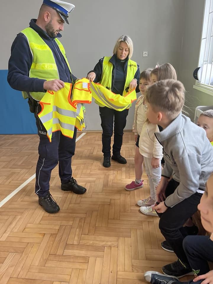 2 listopada w naszej szkole gościliśmy policjantów, którzy w ramach Kampanii profilaktycznych ” Świeć przykładem- Noś odblaski ” przeprowadzili pogadankę dla najmłodszych uczniów.
