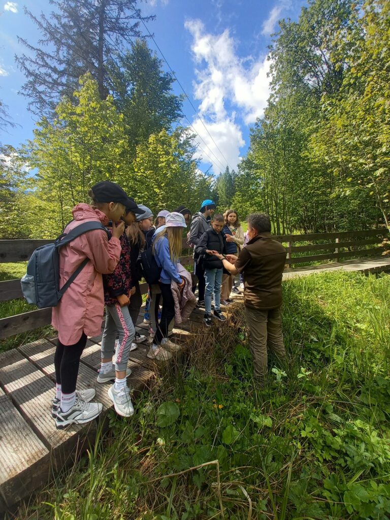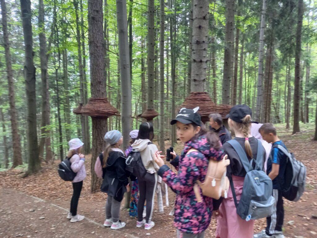 W końcowej części wystawy zapoznali się z najbardziej charakterystycznymi przedstawicielami babiogórskiej flory i fauny. Niezwykłe wrażenie wywarła na dzieciach imitacja wnętrza lasu. Podświetlone okazy zwierząt i ptaków, odtwarzane ich głosy w interesujący sposób zaznajomiły nas z ożywioną przyrodą najwyższego po Tatrach masywu w Polsce. Następnie uczestnicy wycieczki udali się szlakiem ścieżki dydaktycznej „Mokry Kozub”. Z wieży widokowej podziwiały przepiękne pasmo górskie, oraz faunę i florę BPN.