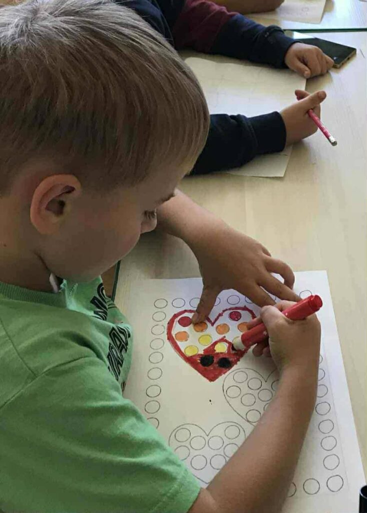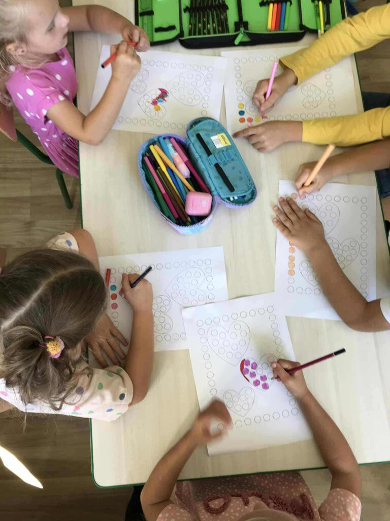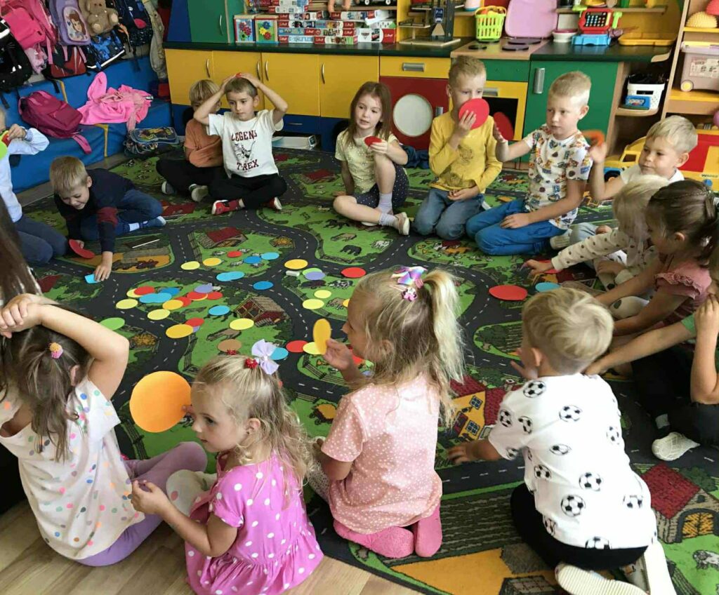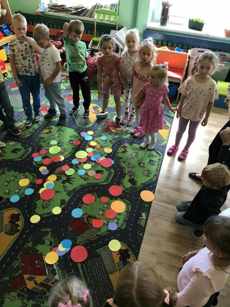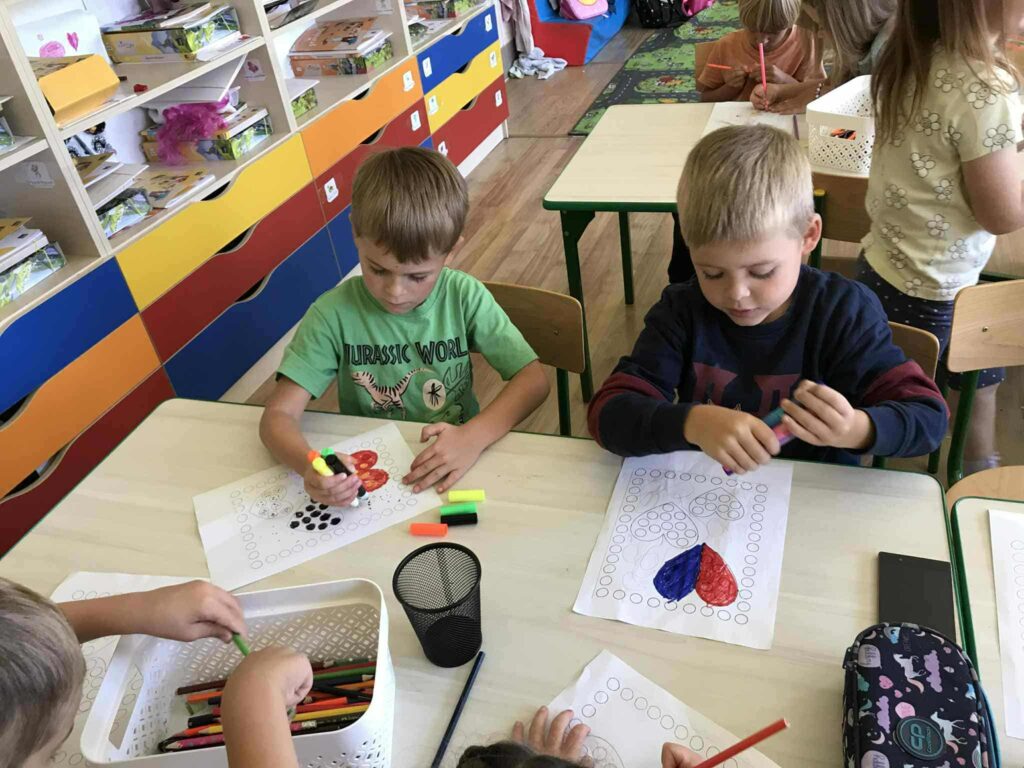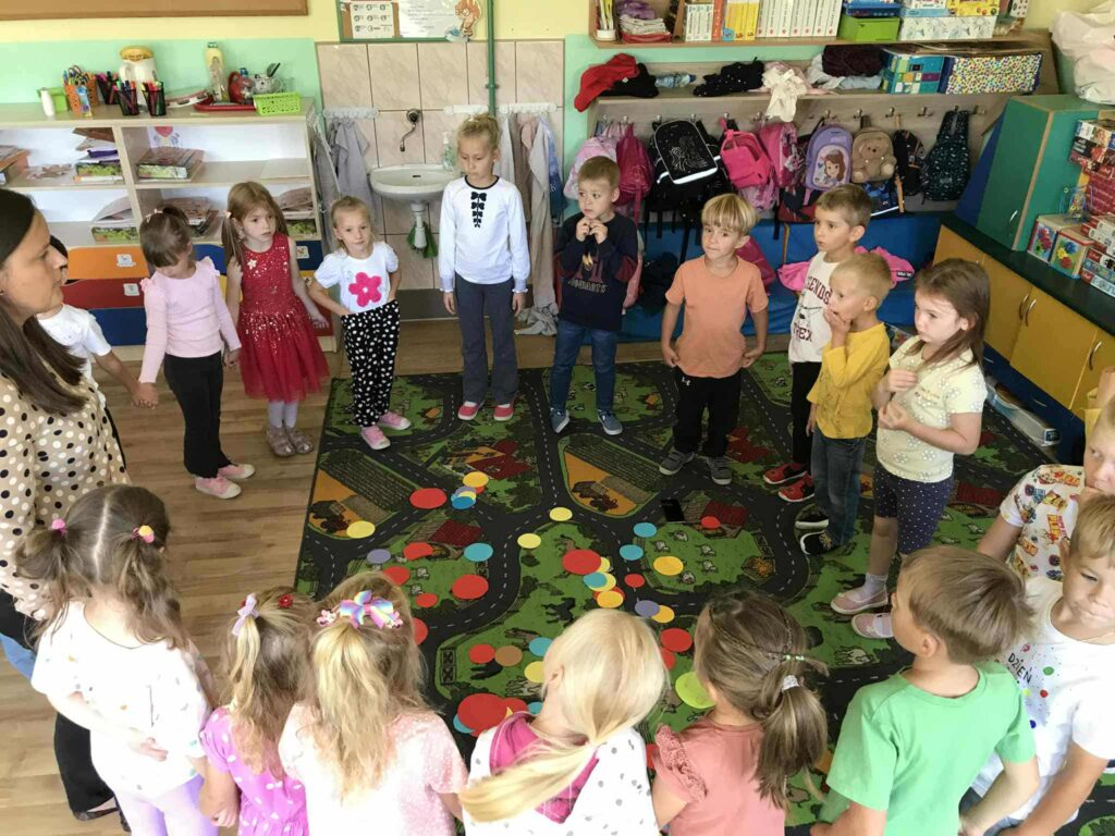 W naszym przedszkolu obchodziliśmy Dzień kropki. Tego dnia dzieci przyszły ubrane w stroje ozdobione kolorowymi kropkami. Wspólnie opowiadaliśmy historię małej dziewczynki Vashti z książki Petera H. Reynoldsa „The Dot”. Rozmawialiśmy o odwadze, talentach i odkrywaniu swoich możliwości. Przedszkolaki brały udział w zabawach ruchowo – muzycznych i plastycznych. To był radosny kreatywny dzień….