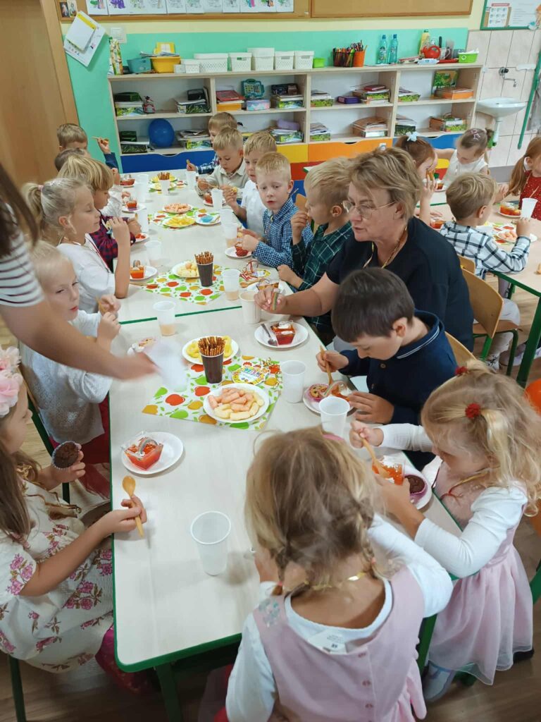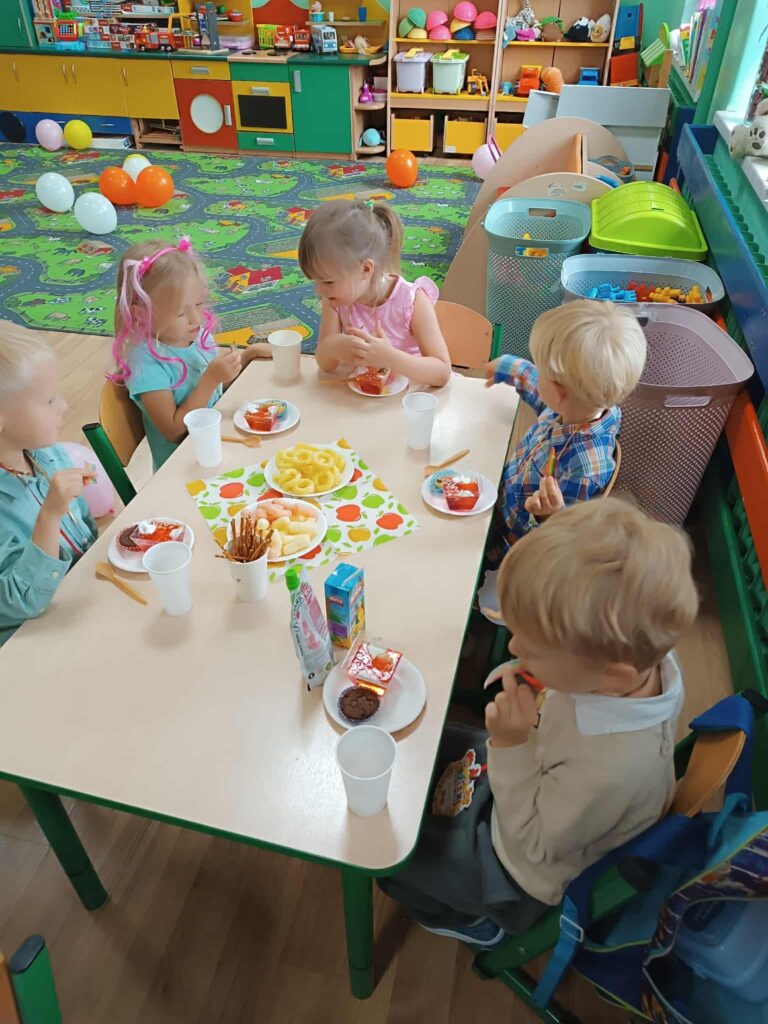 w naszym przedszkolu obchodziliśmy wyjątkowe święto Dzień Przedszkolaka. Od rana w sali panowała radosna atmosfera. Rodzice przygotowali dla dzieci pyszne niespodzianki – kolorowe galaretki i słodkie babeczki