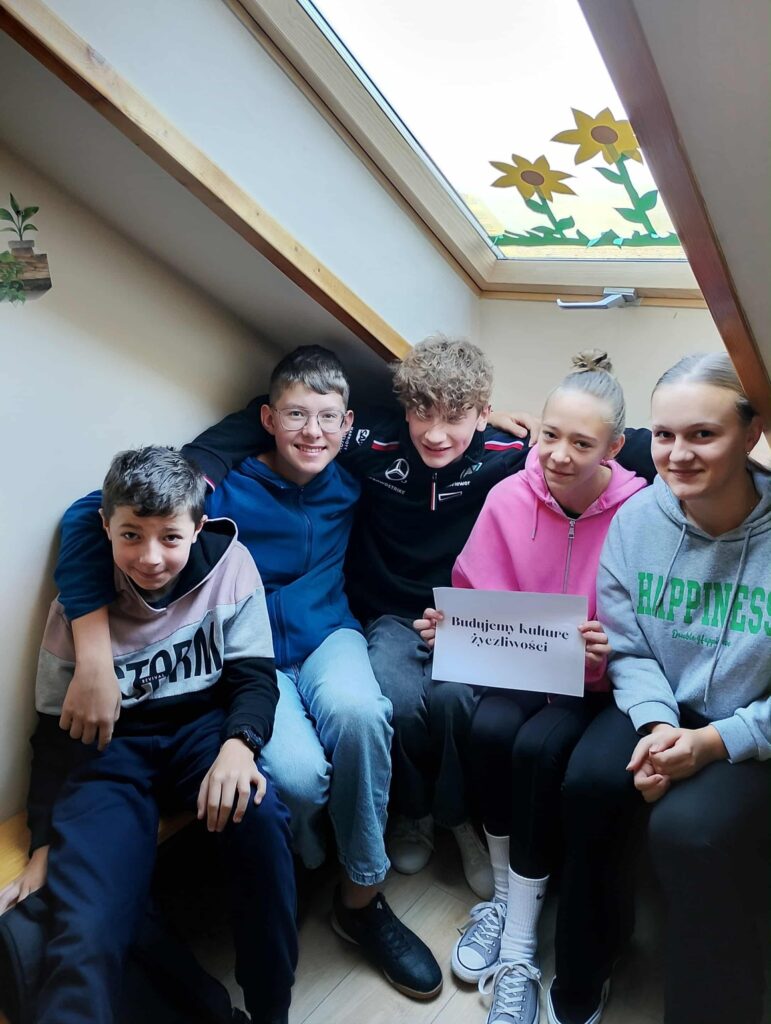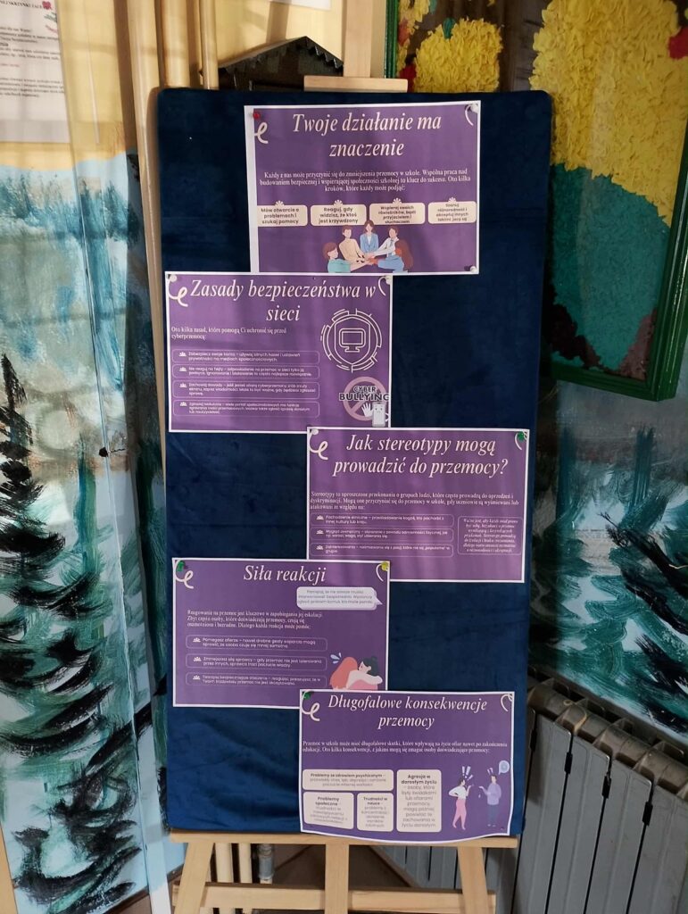 Podczas przerw uczniowie mogli wspólnie grać w gry planszowe, rozmawiać i spędzać czas w swoim ulubionym kąciku integracyjnym. Każdy z nich otrzymał także specjalny emblemat, który przypomina, jak ważne jest budowanie właściwych relacji opartych na szacunku i empatii.