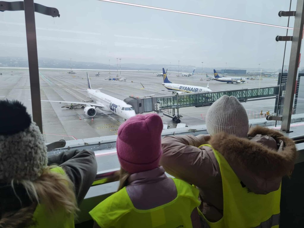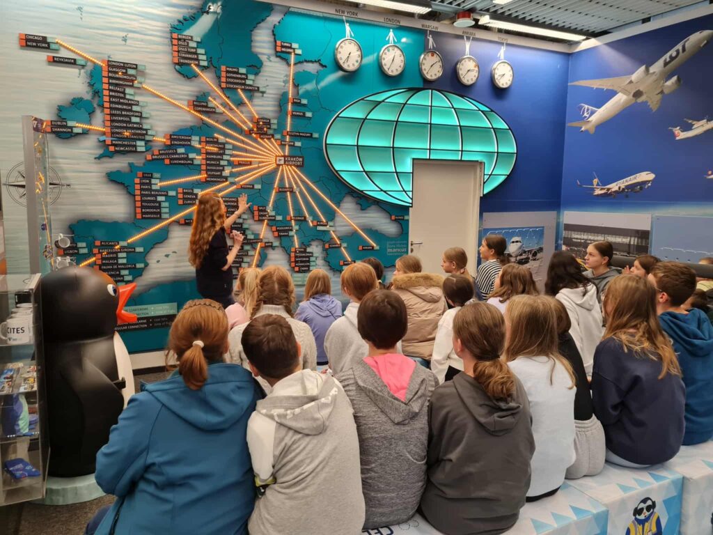 Dnia 25.11. uczniowie naszej szkoły brali udział w edukacyjnej ścieżce w Alwerni. Podczas zajęć uczestnicy poznali etapy powstawania produkcji filmowej – od pomysłu i scenariusza, przez realizację zdjęć, aż po montaż i efekty specjalne. Duże wrażenie zrobiły na nich prezentacje dotyczące efektów specjalnych oraz możliwość obejrzenia fragmentów nagrań „od kuchni „.Drugim punktem programu była wizyta na lotnisku w Balicach, gdzie uczniowie uczestniczyli w drugiej ścieżce. Podczas zajęć przewodnik opowiadał o funkcjonowaniu lotniska, organizacji ruchu lotniczego oraz pracy różnych służb odpowiadających za bezpieczeństwo i obsługę pasażerów. Zobaczyli zaplecze lotniska, poznali etapy odprawy i mogli zająć miejsca w samolocie.